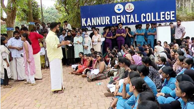 വൈറ്റ് കോട്ട് അഴിച്ചു മാറ്റി ഡെൻ്റൽ കോളേജ് വിദ്യാർഥികൾ പ്രതിഷേധിച്ചത്. ആരോപണ വിധേയരെ പുറത്താക്കും വരെ വൈറ്റ് കോട്ട് ധരിക്കില്ലെന്ന് ഹൗസ് സർജ്ജന്മാർ അറിയിച്ചു. മാനേജ്മെൻ്റ് എവിടെ? ഞങ്ങളിലൊന്ന് പോയില്ലേ? ഇനിയും എത്ര പോകണമെന്ന് വിദ്യാർഥികൾ മുദ്രാവാക്യം മുഴക്കി. അഞ്ചരക്കണ്ടി ഇൻ്റഗ്രേറ്റഡ് ക്യാമ്പസിലെ വിദ്യാർഥികളും പ്രതിഷേധത്തിൽ പങ്കെടുത്തു.